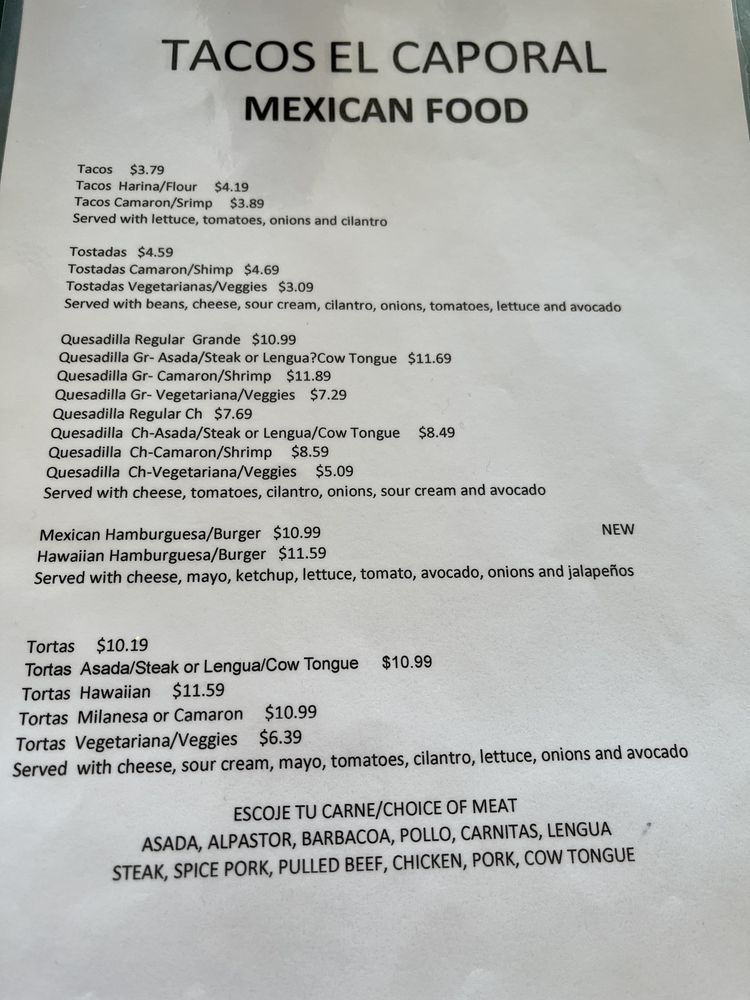 Welcome to Tacos El Caporal, a jewel of Mexican cuisine nestled in Wyoming, MI. This vibrant eatery offers a symphony of flavors that is sure to tantalize your taste buds. The menu boasts an array of tacos, including the succulent Carnitas, zesty Barbacoa, and delightful De Camaron (shrimp) options, each crafted with fresh ingredients and traditional toppings like onions and cilantro for that authentic taste.